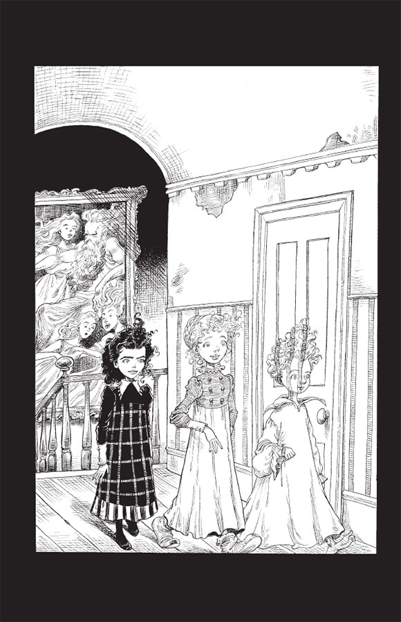Ада обратила внимание, что на Эмили по-прежнему ее широкие мягкие тапочки для улицы. По стене пробежала рябь, и от нее отделился Уильям. «Оденься, Уильям!» приказала ему сестра. Еще одно колыхание обоев, Уильям исчез в тени и через мгновение появился снова на сей раз в развевающейся ночной рубахе.