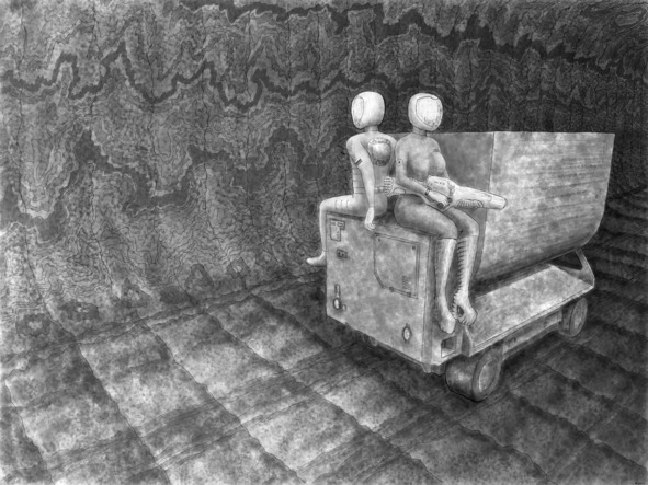 Так мы и дошли до места, оглядываясь по сторонам. Я насчитал около двадцати свежих нор. В конце тоннеля работал механический копатель. Сзади у него стоял прямоугольный сборник, похожий на тележку с кузовом на четырёх толстых колёсах. Он уже почти весь был заполнен.