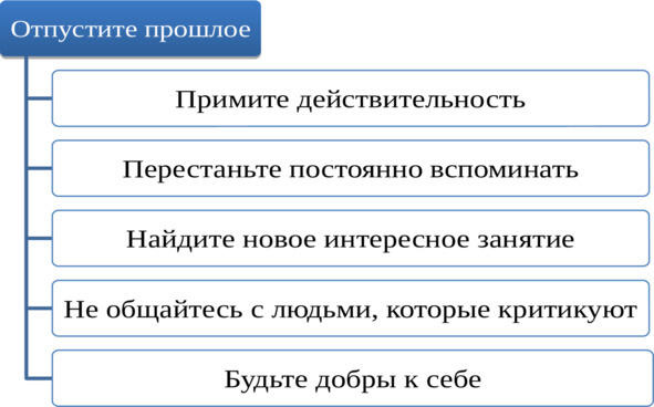 Чтобы полноценно жить настоящим и адекватно планировать будущее, нам нужно извлечь все, что можно, из болезненных воспоминаний прошлого, а затем отпустить эти воспоминания. Вы не можете перевернуть страницу, если все еще перечитываете старую страницу.