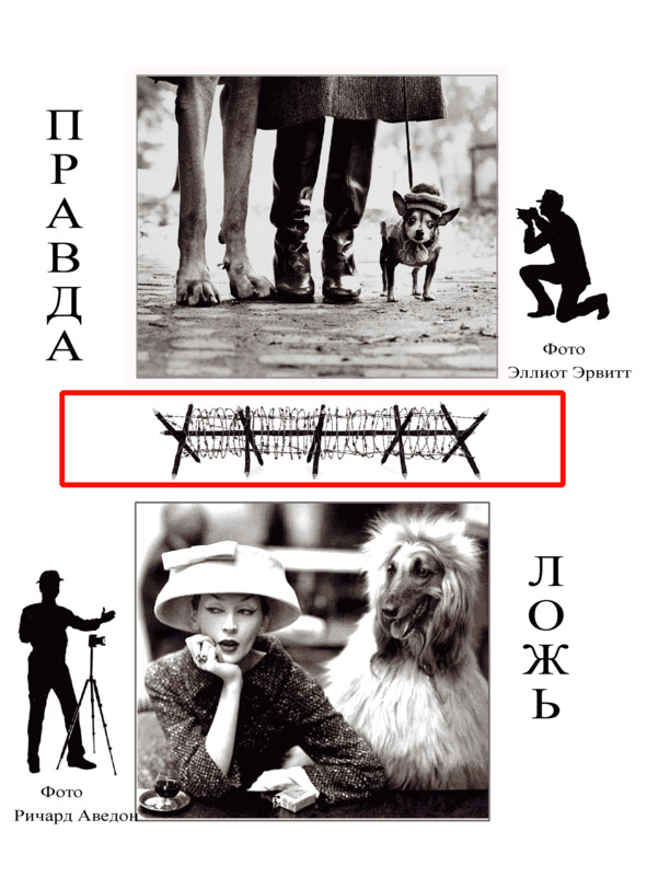 Поединок «Правда-Ложь. Стихотворение включает имена великих фотографов. «За Правду»: Эрвитт Эллиот (род в 1928) американский фотограф-документалист, известный своими откровенными фотографиями ироничных ситуаций в повседневной обстановке; Картье-Брессон Анри (19082004), всемирный классик фотожурналистики; Капа Роберт