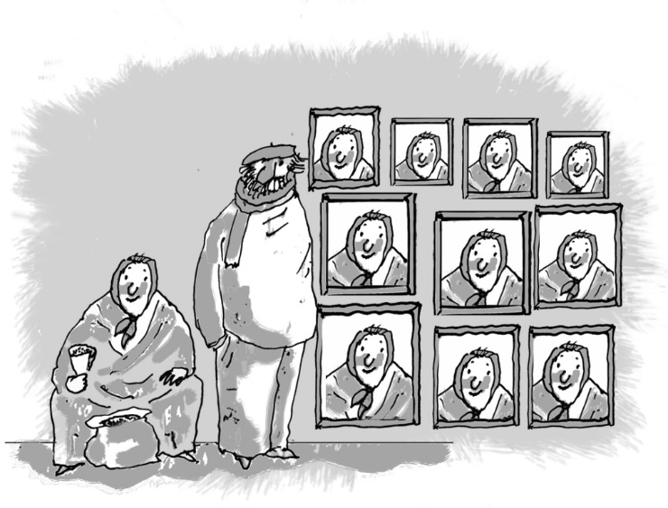 Вперёд от входа по центру бабки с семечками. Торговок шесть в ряд. Щегловские кулацкие морды. Зимой в тулупах, закутанные в плотные коричневые и серые шали. Летом опять же в чём-то чёрном и замотанные в кокон платков. На земле стоят большие холщовые кули-мешки с жареными и сушёными семечками, за ними на скамеечках сидят необъятные торговки. Одна из них негромко зазывает покупателей: