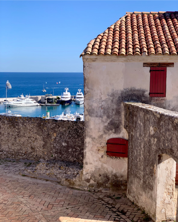 Вид со стены там много видов. Можно посмотреть на синее море с белыми полосками яхтенных парусов, в другую сторону вид порта. С высоты оцениваешь размеры яхты Усманова и остальной мелочевки. Еще можно увидеть песчаные пляжи, которые тянутся до самой Ниццы. И снежные Альпы, конечно.