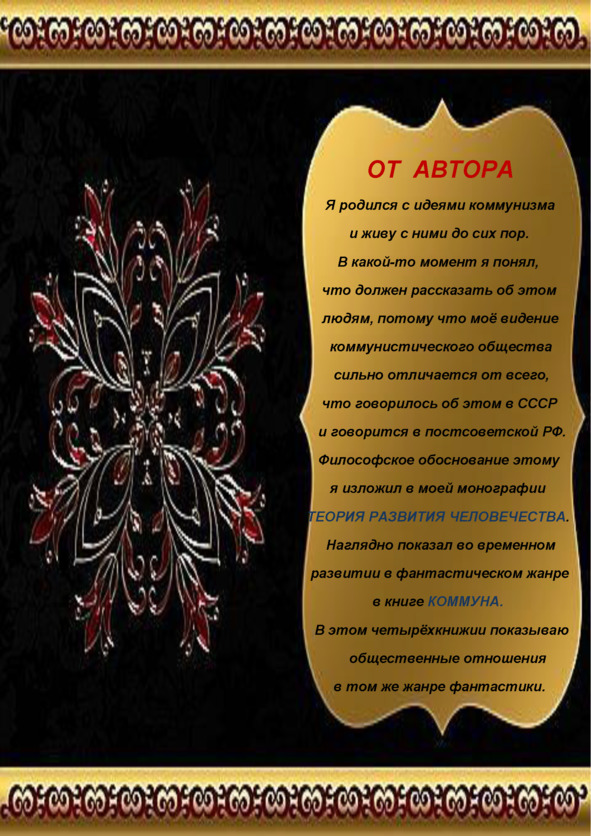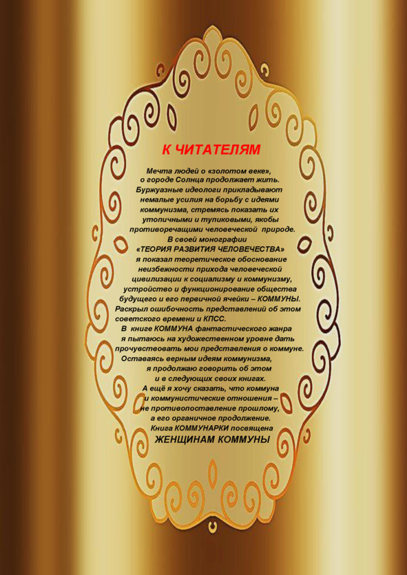 Жмурясь от яркого солнечного света, нашедшего путь в техносферу коммуны, Зоя не удержалась, чтобы успеть хоть немного насладиться этими яркими тёплыми лучами, и подставила лицо навстречу солнцу. Способность улавливать незаметно, мимоходом, любой дар природы одна из особенностей женщины. Несомненно, стремление к наслаждениям у неё от природы выше, чем у мужчины, ведь женщина и есть естественный адсорбент наслаждений, делающих её счастливой. И это ощущение счастья преобразует её существо до отдающего обратно в природу желания оставить потомство. Счастливая женщина всегда прекрасна, всегда желанна, светится изнутри неудержимым стремлением поделиться своим счастьем со всем ландшафтом проживания, с любимым мужчиной, передавая ему часть полученной от этих наслаждений и преобразованной в женскую силу энергии, в излучение запахов, звуков, движений, в конечном счёте, и ведущих к другому чуду природы детям. Живое вещество, каким является и человек это, в принципе, организованный в кожной оболочке сгусток множества живых клеток, которые, в свою очередь, являются организованными молекулами, и всегда имеют специфичный запах, пахнут. Всё в мире непрерывно меняется, приходит в соответствие с изменениями окружающей среды. И молекулы, и клетки, и весь организм, ими образованный. И каждому изменению, каждому новому состоянию организма соответствует свой специфичный запах. Здоровый организм один запах, больной другой, весёлый третий, злой четвёртый По запахам весь живой мир, вступая во взаимодействие, неосознанно узнаёт всё о своих соседях. Люди в значительной мере утратили остроту ощущений, но, по-прежнему, по-животному, не осознавая это, взаимодействуют и через запахи, и через другие феромоны, такие как звуки, взгляды, движения и тактильность, пусть даже не пахнущие.