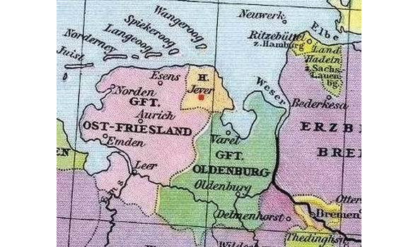 Йевер (Евер) с 1347 имел права вольного города, был портом и имел доступ к Северному морю через Харлебухт. В 1546 году внешней гаванью для Евера стал Хуксиэль. Город продолжал оставаться процветающим торговым центром, привлекал не только торговцев, но и пиратов. Монеты Йевера были найдены в Финском заливе и Польше.