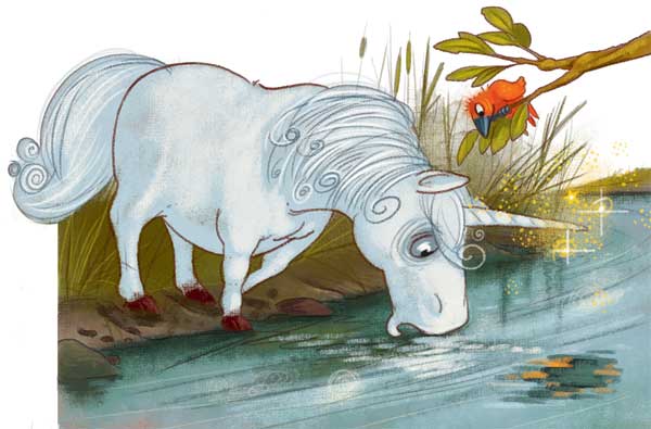Курт чуть склонился вперёд и посмотрел на воду. Помедлил. Только воды ему не хватало! Он прекрасно обходился без нее, когда не хотел пить. Мокрая такая. Холодная вода. Какая-то неуютная. А чтобы подвинуть камень, придётся мочить не только рог, но и всю голову. Он инстинктивно вздрогнул от этой мысли. Вода напоминала ему о детстве, о самом раннем времени, когда он был совсем маленьким единорожкой Вода заливалась ему в глаза, в уши и в рот, везде вода. Его самое первое воспоминание как он борется за жизнь, барахтаясь в воде.