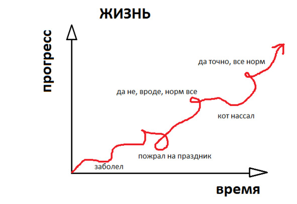 Часто люди жалуются на обычные бытовые трудности (либо праздники), после которых «горе» пришлось зажрать. Как теперь жить, вся диета насмарку? Поймите, иногда нам просто приходится сделать шаг назад, чтобы потом сделать два вперёд. Любое развитие в жизни идёт по кривой, петляющей линии.