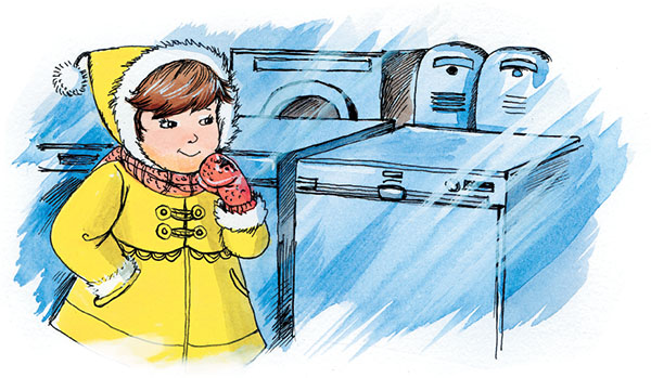 Что принести домой Авроре? Чему папа обрадуется так сильно, что он станет учить её играть? Это должно быть что-нибудь по хозяйству. Он ведь так обрадовался пылесосу потому, что тот помогал ему убирать квартиру. Аврора заглянула в витрину магазина. Там стояли холодильники и разные посудомоечные машины. Тут она услышала, как одна женщина сказала другой: