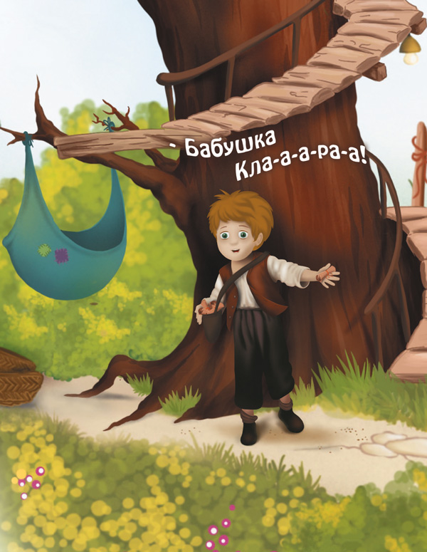 А на восточной стороне дерева, на двух могучих ветвях, расположился небольшой деревянный домик с причудливыми окошками. Здесь жила необычная старушка хрупкая и довольно проворная, с рыжей копной непослушных кудрей и обаятельной улыбкой.
