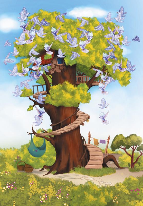 Каждый раз, распахивая скрипучую дверь, старушка бодро скакала вниз по деревянной лестнице, которая обвивала толстый ствол. На звук её шагов вся стая тут же взмывала ввысь, обнажая многочисленные ветви могучего дерева.