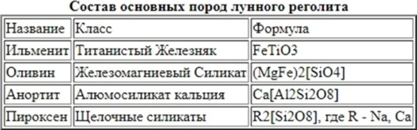 Если оливин, например, будет составлять 2530% от общего количества смеси, реголита, то смесь будет иметь зеленоватый оттенок. Фиолетовый ильменит даст фиолетовый цвет, который наблюдается в одном известном образце советского, лунного грунта. Анортит даст розовый, красный, желтый цвета.