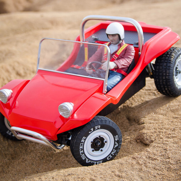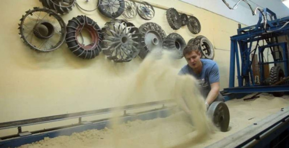Леонид Коновалов разместил в своей публикации фотографию НАСА, на которой показано, как испытывались «лунные» колеса американского «луномобиля». Это изображение, по мнению кинооператора, является доказательством его явно ошибочного предположения: «Снять вылет песка на 2 метра в высоту (при скорости ровера 1018 км/ч) просто невозможно на полноразмерной модели. В земных условиях даже при скорости отрыва песка 3640 км/ч (что в 2 раза больше максимальной скорости ровера) песок поднимается на высоту не более 1 метра. В земных условиях песок из-под колёс не поднимается выше 1 метра. А вот на уменьшенной копии сделать вылет песка выше модели можно без труда. Уменьшенная радиоуправляемая модель движется по песку. Вот так примерно эта модель выглядит вблизи». [1] Леонид Коновалов представил фотографию малого макета автомобиля с небольшой куклой на сидении. Чтобы кукла не упала, ее закрепили специальными ремнями.