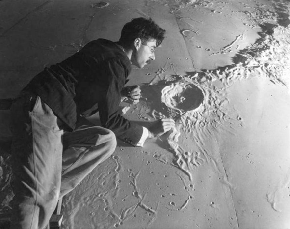 Как же на самом деле были выполнены съемки передвижения по американской «Луне»? Для этой цели в большом ангаре необходимо создать макет места прилунения. Такие макеты, если верить отрывочным сообщениям представителей НАСА, действительно существовали. По понятным причинам фотографии этих грандиозных макетов необычно больших размеров не осталось, или их не представили широкой общественности. Но остались различные макеты лунной поверхности, которые были созданы не только в структуре НАСА. Эти глобусы Луны имели довольно точный рельеф, который повторял настоящие элементы реальной лунной поверхности. Фотографии таких макетов можно найти в большом количестве в открытом доступе. Американским сказочникам ничего не мешало создать из песка и связующего клея создать макет лунной поверхности относительно большого размера. Конечно, появление огромного живого актера среди «лунных» гор и долин этого макета было бы совсем не логичным и опрометчивым поступком. Такое соотношение человека и лунного рельефа, которое показано на фотографии ниже, обманщики из НАСА не показывали.