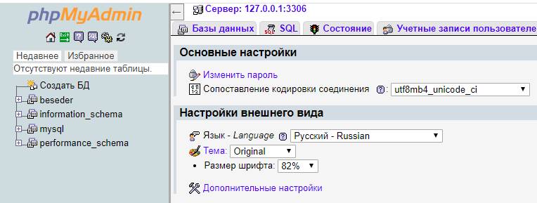 Заходим в phpMyAdmin и проверяем. В списке БД должна появится новая база «beseder».