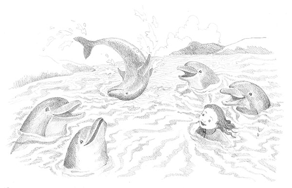 Как только ворота закрыли, девочка быстро натянула плавательный костюм и поспешила в лагуну к дельфинам. В спасательном центре жила стая из пяти дельфинов афалина. Они самые умные создания, которых когда-либо встречала Зоуи. А ещё самые дружелюбные!