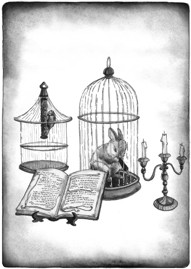 Она чиркнула спичкой и зажгла одну из свечей. Пламя дотянулось до воска и разгорелось ярче, отгоняя темноту. Коко приподняла ткань на одной клетке, а Джордж на другой, под тканью они действительно обнаружили кролика и попугая.