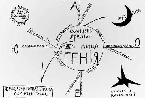 «Железобетонная поэма» В. Каменского «Солнце» из книги В. Каменского и А. Кручёных «1918» (Тифлис, 1917)