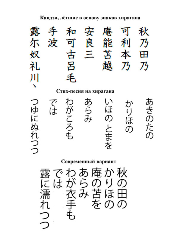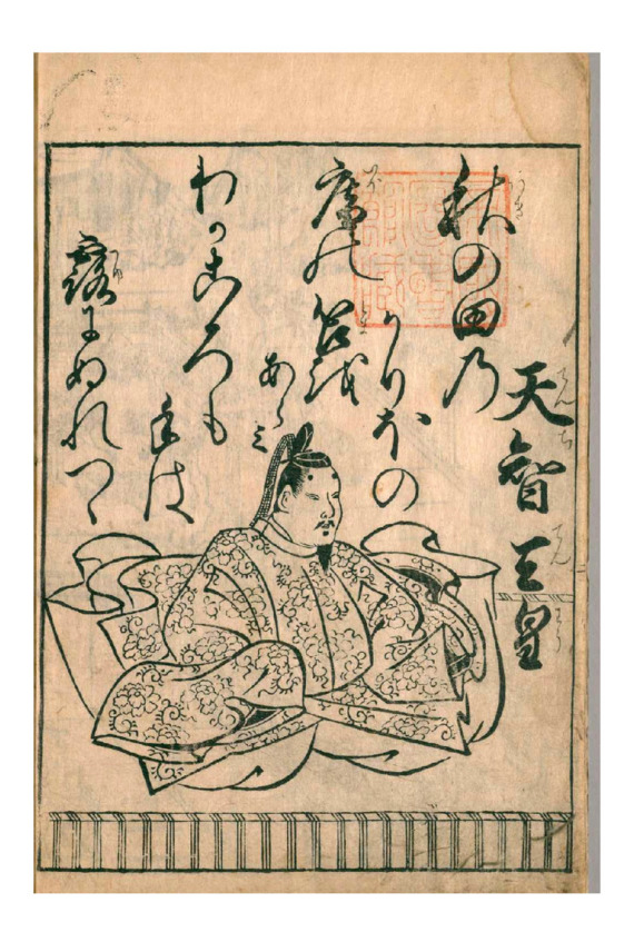 Дополнения. Стих является знаменитой зарисовкой тягот и невзгод жизни простого крестьянина. Некоторые исследователи считают, что авторство принадлежит не императору Тэндзи, а неизвестному поэту, т.к. в старейшей антологии японских стихов «Манъёсю» 759 г. есть похожий стих. Произведение могли приписать императору, т.к. он действительно радел о простых людях. Существуют и другие мнения относительно смысла произведения: оно могло быть написано не в думах о народе, а в скорби по недавно почившей матери либо, по другим версиям, в печали из-за упадка императорской власти. Стих был положен на музыку в начале XIX в. в композиции «Яэгоромоно» («Восемь одежд»).