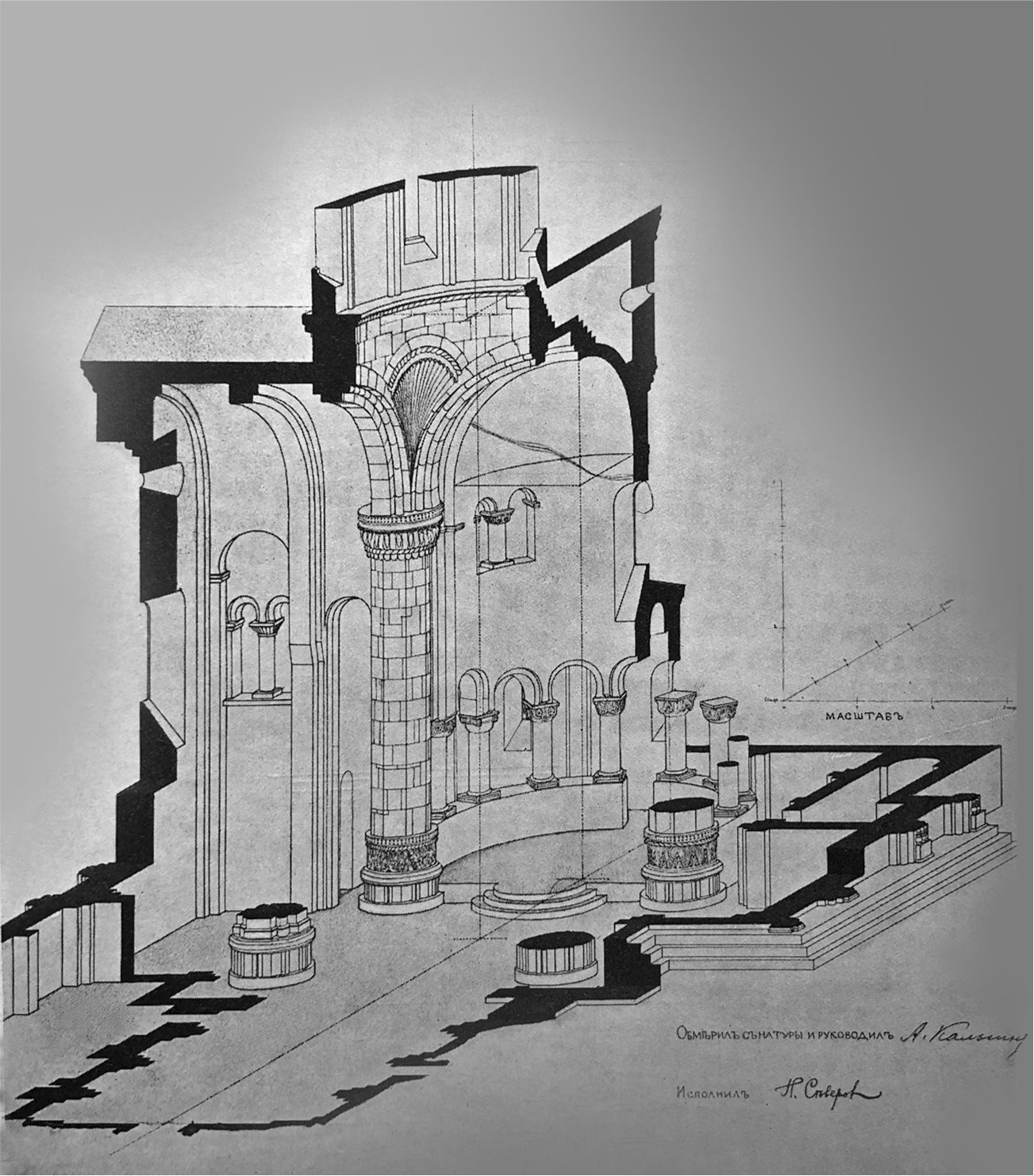 Ишхани. Вид в северную половину алтаря главного храма. 1917. Фото из книги Э. Такаишвили