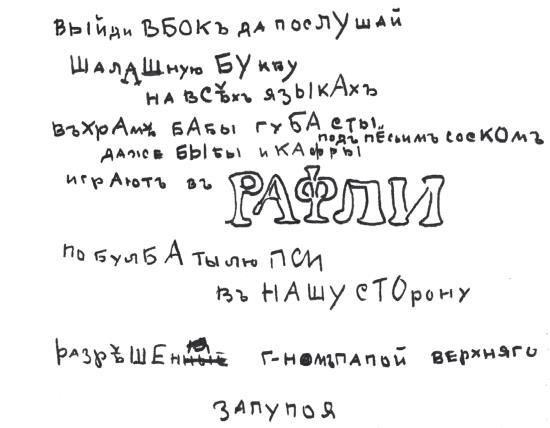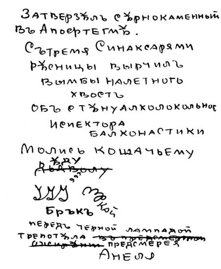 До поступления же в гимназию я написал ряд поэм и стихов анийски-семейного цикла. Потом идёт период ученичества, разнообразившийся дамским элементом, до встречи с Гордеевым, когда я резко приобретаю физиономию свою в «4 Г». Затем опять ученичество и в 1928 году ренессанс.