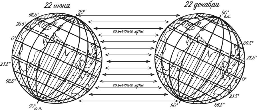 Дело в том, что ось вращения Земли не перпендикулярна плоскости, в которой наша планета вращается вокруг Солнца, а наклонена к ней. Поэтому каждое из двух полушарий в позиции зимы отклонено от Солнца, а в позиции лета наклонено к нему. Вот почему Новый Год в Москве встречают в шубах, а в Австралии в купальниках.