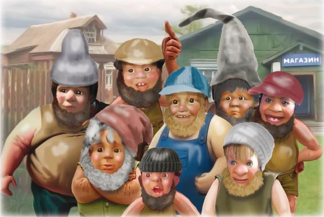 Уже через пару часов на пороге дачи появились очень странные люди маленького роста. Восемь человек. Одеты прилично, но как-то старомодно. Бородатые, ну точно таджики. У того, что старший из них, в руках резной посох.