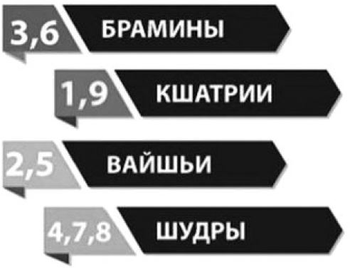 Деление на КАСТЫ, по которым людей причисляют к одному из уровней эволюционного развития, известно еще с периода расцвета Атлантиды. Ведические Шастры также указывают на это деление. Общество людей в естественном порядке складывается в иерархическую структуру. Каждая каста приносит пользу обществу, если выполняет свое предназначение. С помощью ведической нумерологии можно узнать свою принадлежность к определенной касте. Это даст четкое понимание своего предназначения на это воплощение, своего цветотипа, качеств личности. Для того, чтобы определить свою варну (касту), сложите число, месяц и год вашего рождения до однозначного числа.
