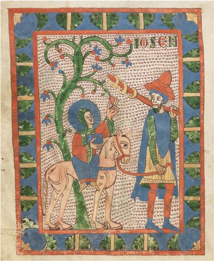 I.1.13. Бегство Святого семейства в Египет. Иосиф, который спасает жену и приемного сына Богочеловека, одет в огромный юденхут.