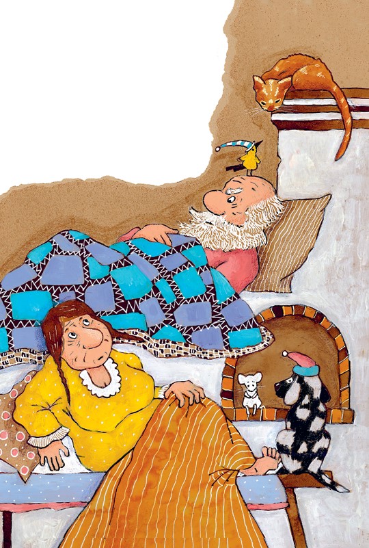 Дед да баба спали-спали, проснулись темно. Опять заснули. Спали-спали, проснулись темно. Опять заснули. Спали-спали, проснулись темно. Что за диво, никак ночь не кончится!