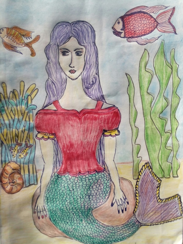 fish-dancers and everyone sang, danced, rejoiced at the return of Silena. The little mermaid was teased with sweets, combed her silky hair with golden combs, weaved the most fragrant algae into her braids and pink pearls.