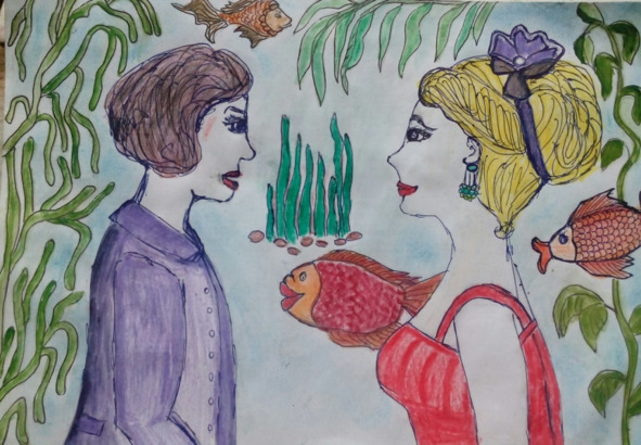 Time passed, Silena grew up and after school she entered the Maritime Pacific University at the research department Human Impact on the Marine Environment. She liked this topic very much, and the story of shipwrecks was told by a very interesting catfish with a big gray mustache, and this catfish was a witness to none of these wrecks. Therefore, she especially adored this subject. Som and his students visited one sunken ship. The little mermaid collected souvenirs for herself: a jug and figurines of ancient gods. These were Aphrodite, Apollo and others. Having sailed home, she began to look, admiring the figures.