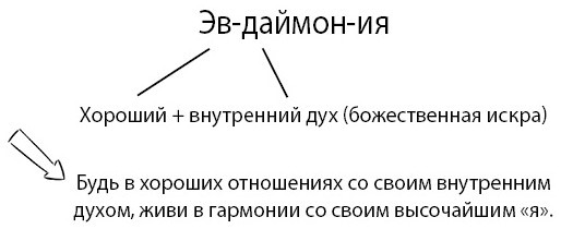 Представь себе лучшую версию себя. Загляни внутрь: знаешь ли ты, что представляет собой эта высочайшая версия твоего существа та, что действует правильно во всех ситуациях, что не ошибается, и кажется тебе известно это идеальное «я». Греки дали ему название даймон внутренний дух, или божественная искра. Для стоиков и прочих философских школ древнего мира главной целью жизни была эвдаймония, согласие (эв означает «хороший») с внутренним даймоном (не путать с демоном, то есть злым духом).