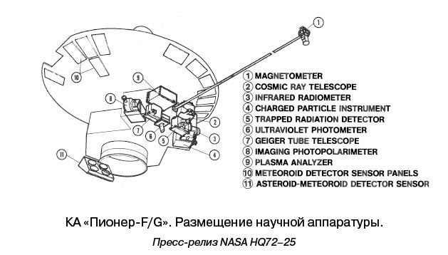 Из 150 полученных предложений для установки на КА «Пионер-F/G» в марте 1969 г. были выбраны 11 научных инструментов: