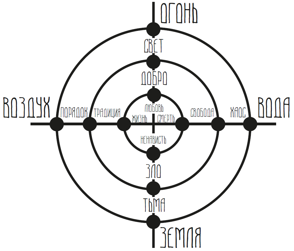 (Старшая Эдда.Речи Вафтруднира)В магической системе трёх кругов мир Нифельхейма соответствует первооснове Тьма.