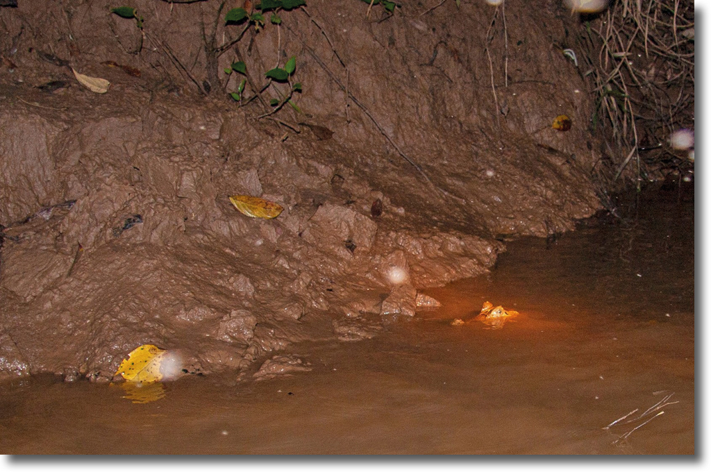 На головы у нас были одеты налобные фонарики, которые должны были освещать путь и помогать искать в темноте светящиеся глаза кайманов. Кайманы, так же как и хамелеоны, обладают удивительной способностью изменять цвет тела, особенно если вокруг становится холоднее. В это время цвет меняется с более светлого на тёмно-коричневый.