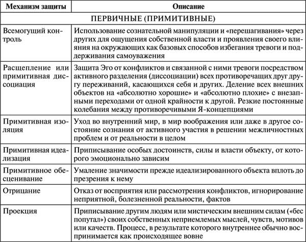 Таблица 5. Механизмы защиты личности