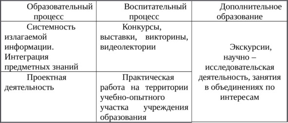 Система экологического воспитания и образования очерчивает основные направления и формы деятельности по формированию личности, обладающей экологической культурой и мышлением.