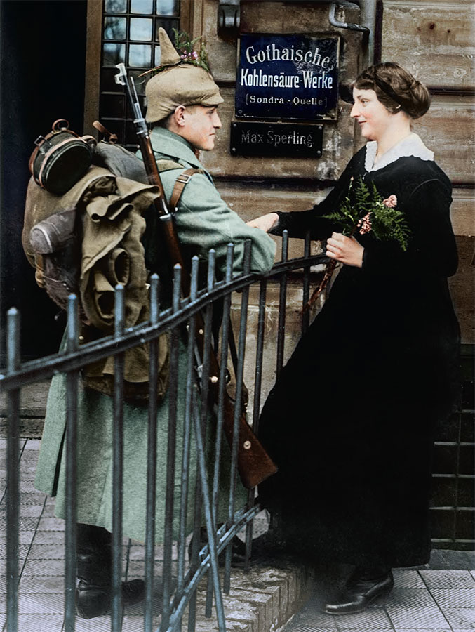 Но весь этот петушиный задор ради справедливости отметим, далеко не в одной только Германии куда-то исчезал, когда прощались обычные люди: они чувствовали и страх, и взвинченность, и боязнь, и неуверенность. Вернутся ли они домой? И если вернутся, то когда?