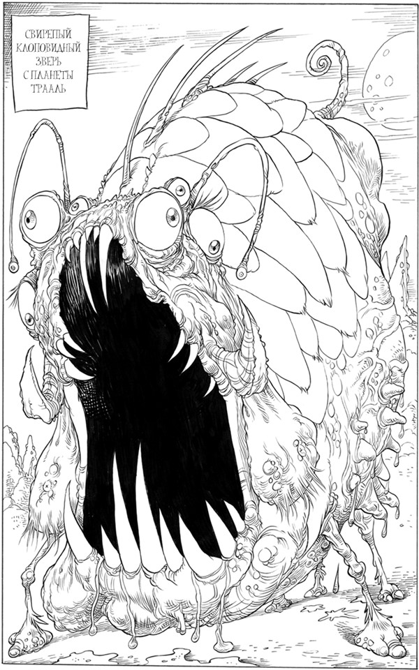 Полотенце, говорит он, это самая полезная вещь для космического автостопщика. Отчасти потому, что оно имеет большую практическую ценность: вы можете обернуться им для тепла на холодных лунах Беты Джаглана; вы можете лежать на нем на восхитительных песчаных пляжах Сантрагинуса‐5, вдыхая терпкий морской воздух; вы можете спать, укрывшись им, под красными звездами в пустынных мирах Какрафуна; сделать из него парус, плывя на маленьком плоту по медленной реке под названием Моль; завязать на конце узел, намочить и использовать в драке; обернуть им голову для защиты от едких запахов или взгляда свирепого клоповидного зверя с планеты Трааль (умопомрачительно тупое животное: оно думает, что если вы не видите его, то оно не видит вас; глупое, как полено, но очень свирепое); вы можете размахивать полотенцем, чтобы вас заметили, и, конечно же, вытираться им, если оно все еще достаточно чистое.