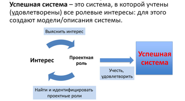 В современном системном мышлении через проектные роли, предметы интереса и ролевые интересы вводится понятие «успешная система».