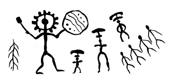 Невысокий шаман хрупкого телосложения не носил камни, а перемещал их по воздуху мановениями своей руки. При этом он дул в небольшой свисток, издававший высокие, почти неслышимые уху звуки. Когда работа была закончена, шаман прошёл по лабиринту и неожиданно в его центре взлетел на полметра над поверхностью земли. Что-то ему, видимо, не понравилось, и строитель лабиринта поменял местами несколько камней. Пройдя ещё раз между каменных спиралей, он поднялся уже метра на три и, видимо, остался доволен своим творением порталом для перемещения души в верхние миры.