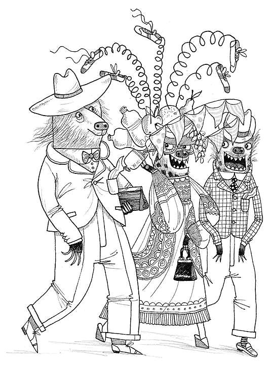 На миссис Хвостоун были симпатичное летнее платье в цветочек и одна из её фирменных шляпок: она изготовила её специально к празднику, использовав моток парусины, фрукты, бутылки из-под воды и несколько пар детских кроссовок, которые нарочито небрежно болтались вверх и вниз, прикреплённые к старым пружинам. На верхушке такая шляпа была малость тяжеловата, так что Амелии приходилось придерживать её, чтобы весь головной убор не перекатывался с одной стороны головы на другую. Дядя Тони вёз Миранду в кукольной коляске, а мистер Мак-Тупинс джентльменисто вышагивал рядом в бледно-голубом брючном костюме и белой шляпе-федоре.