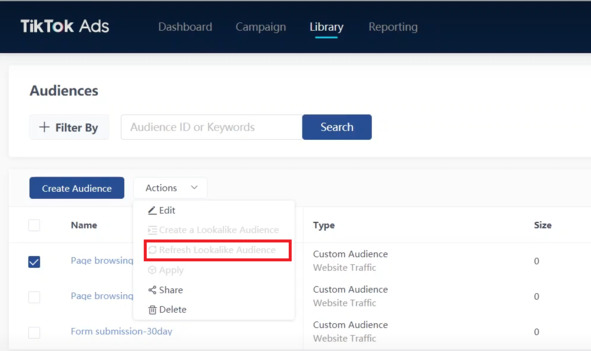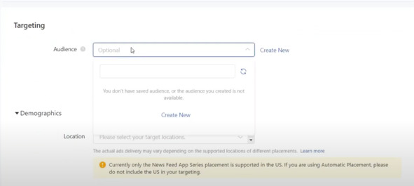 После того как аудитории созданы,после того как они станут доступны, когда появится их размер, вы можете зайти в создание рекламной кампании: