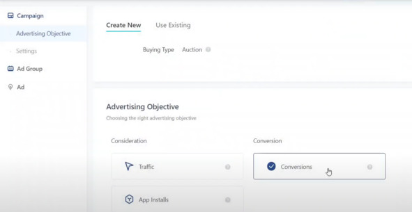 Если вы хотите привлекать аудиторию, которая будет конвертироваться, которая будет оставлять заявки, совершать какие целевые действия, то нужно выбирать именно пункт Conversions: