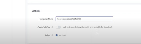 Create Split Test сейчас он может быть основан только на таргетинге.
