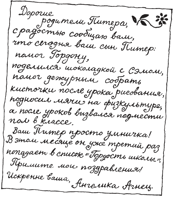 Ты прекрасно знаешь, что за письмо! вмешалась мама. Это письмо от вашей учительницы, мисс Секиры. Третье на этой неделе.