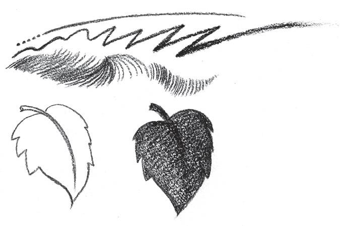 Важно помнить, что на первых этапах рисунка линия определяет размер изображения на листе, его композицию. Один и тот же объект, нарисованный с помощью линии мягкой и волнистой или жёсткой и ломаной, зрительно воспринимается по-разному, приобретая особую художественную выразительность. Посмотрите на эти графические фантазии: это ветка полыни и волшебная новогодняя ёлка в исполнении сказочника-художника.