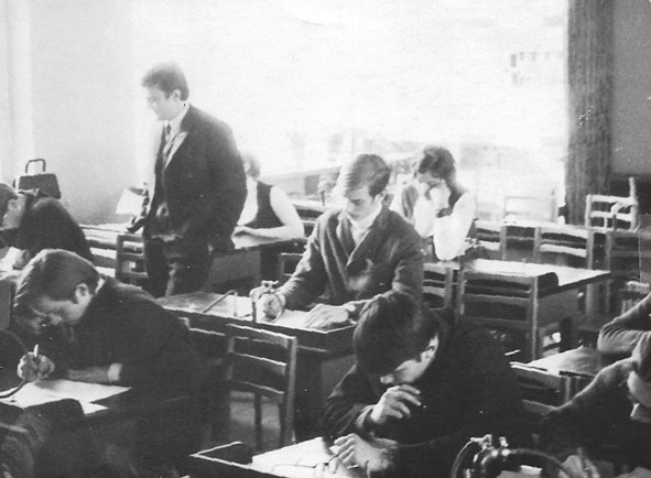 На фото автор проводит олимпиаду по физике среди школьников. Было время, когда физика была в моде и значок МФТИ, нацепленный на лацкан пиджака, вызывал уважение. Автор на фото в костюме и даже в галстуке. Редчайший случай. «Оденься поприличнее, не позорь науку», сказали в оргкомитете олимпиады. Вот я и не позорил, старался, как мог.