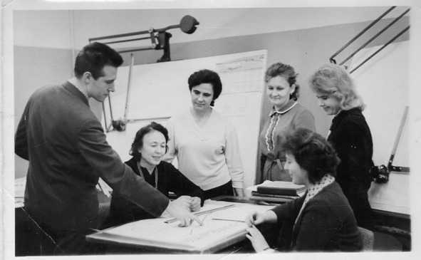 Женщины посовещались и решили украсить свой «цветник» красивым мужчиной. Проголосовали и пригласили симпатичного парня. Парень ничего не понимал в их чертежах, но на фото смотрелся органично. Женщины сначала долго смеялись, потом устали, остались только улыбки.