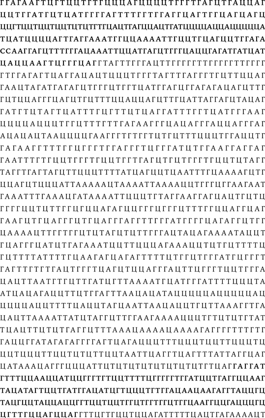 Три миллиарда оснований ДНК это ужасно много. Для наглядности вот фрагмент генетического кода человека: