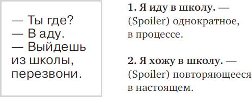 Не столь заметные, но тем не менее очевидные различия можно найти во всех глаголах движения: бегу бегаю, еду езжу, несу ношу, я одет в ношу (одежду), и так далее. Помните хокку про вишни? Лезу лазаю. Тоже глаголы движения.